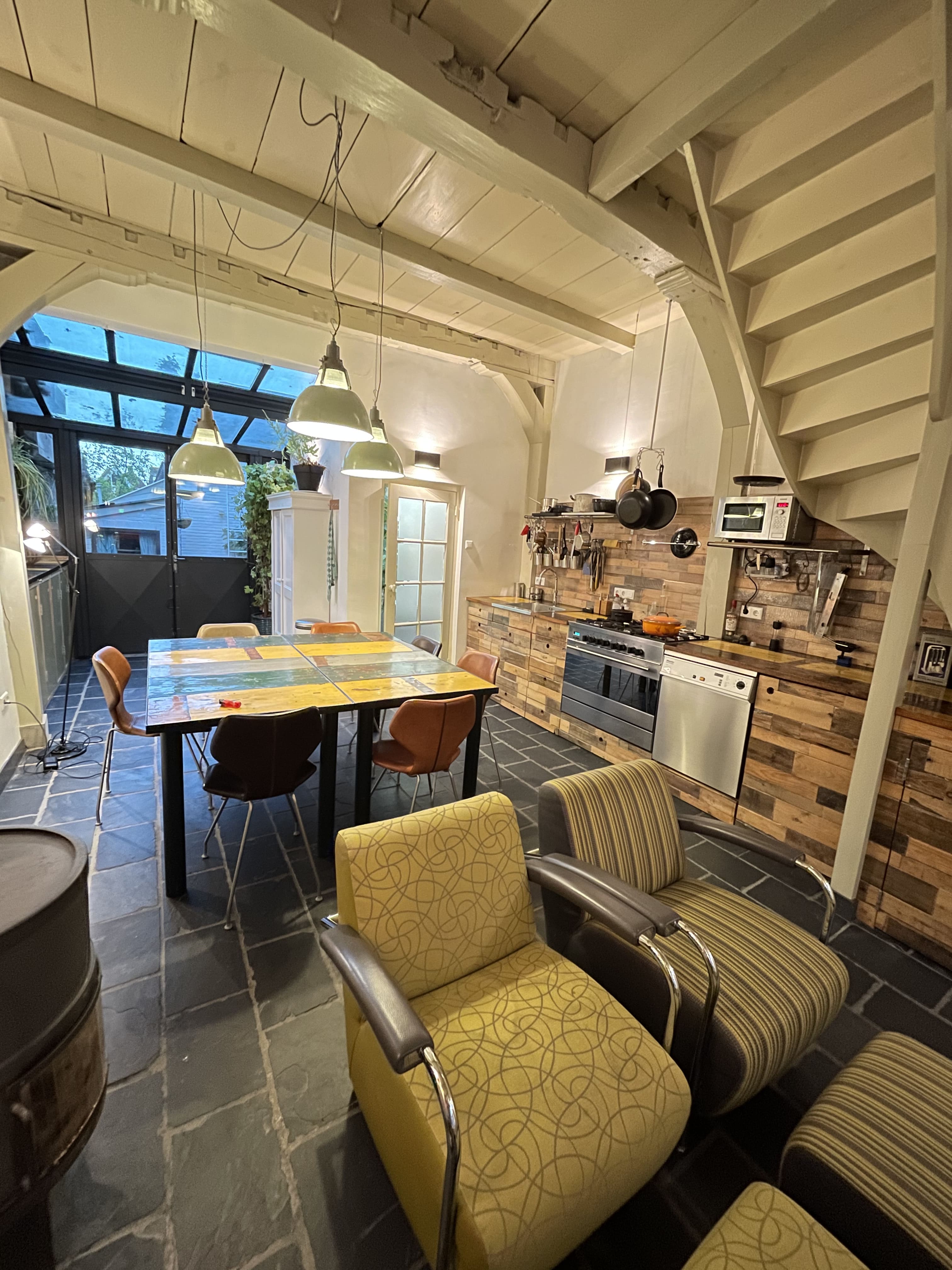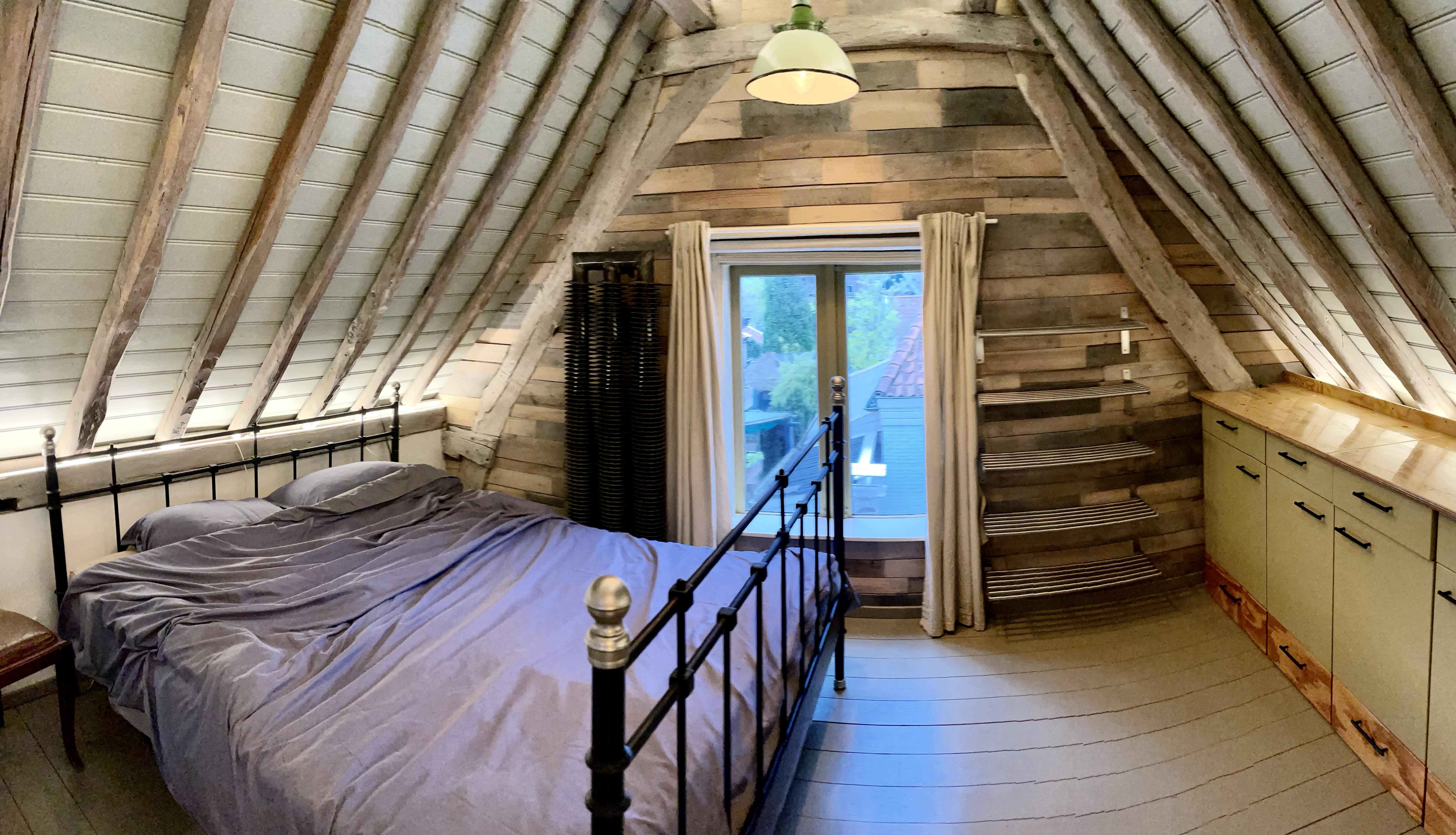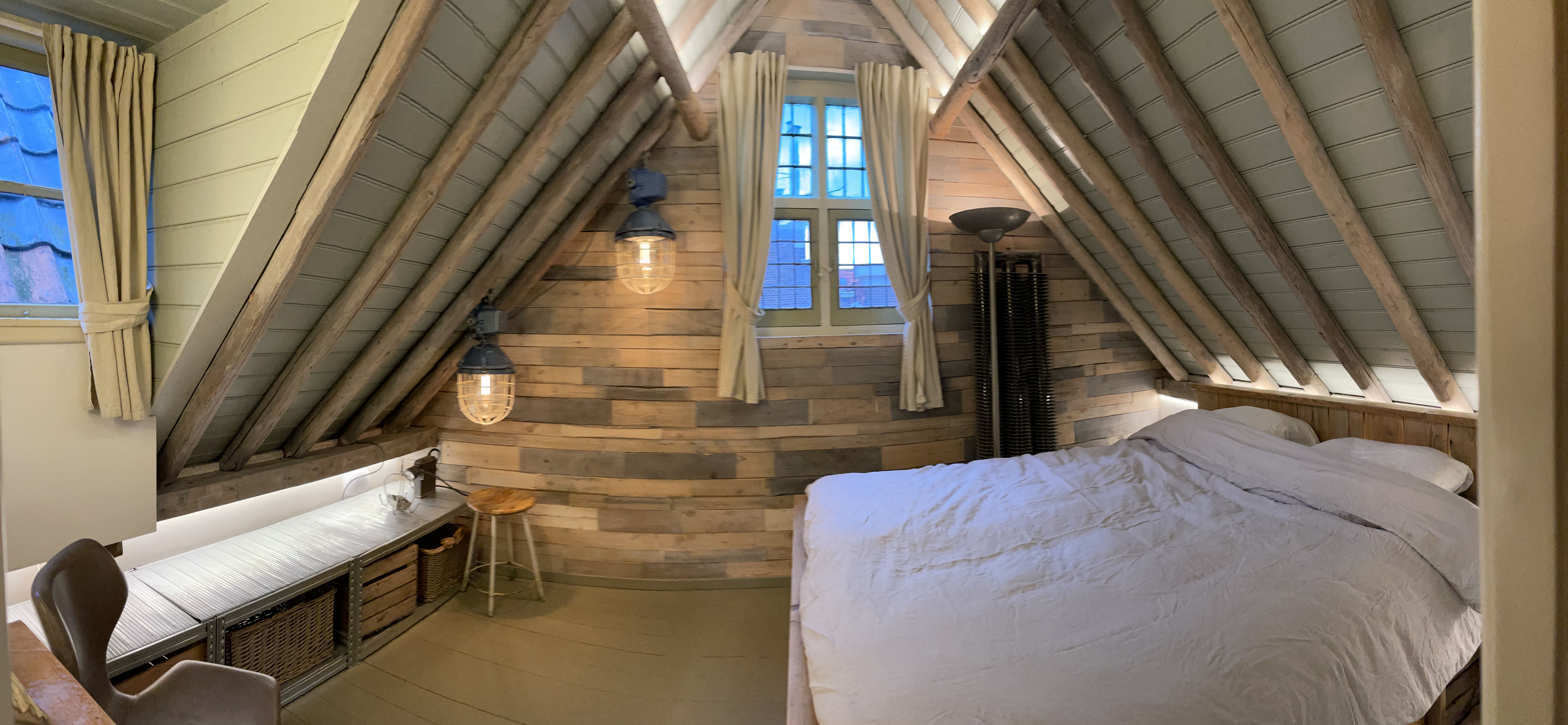 In dit voormalige Koetshuis zijn de historische details bewaard gebleven. Originele houte constructie met steunbalken, korbelen en sleutelstukken zijn mooi in het zicht. Evenals de traditionele trapgevel en sporendak zichtbaar vanuit de slaapkamers.